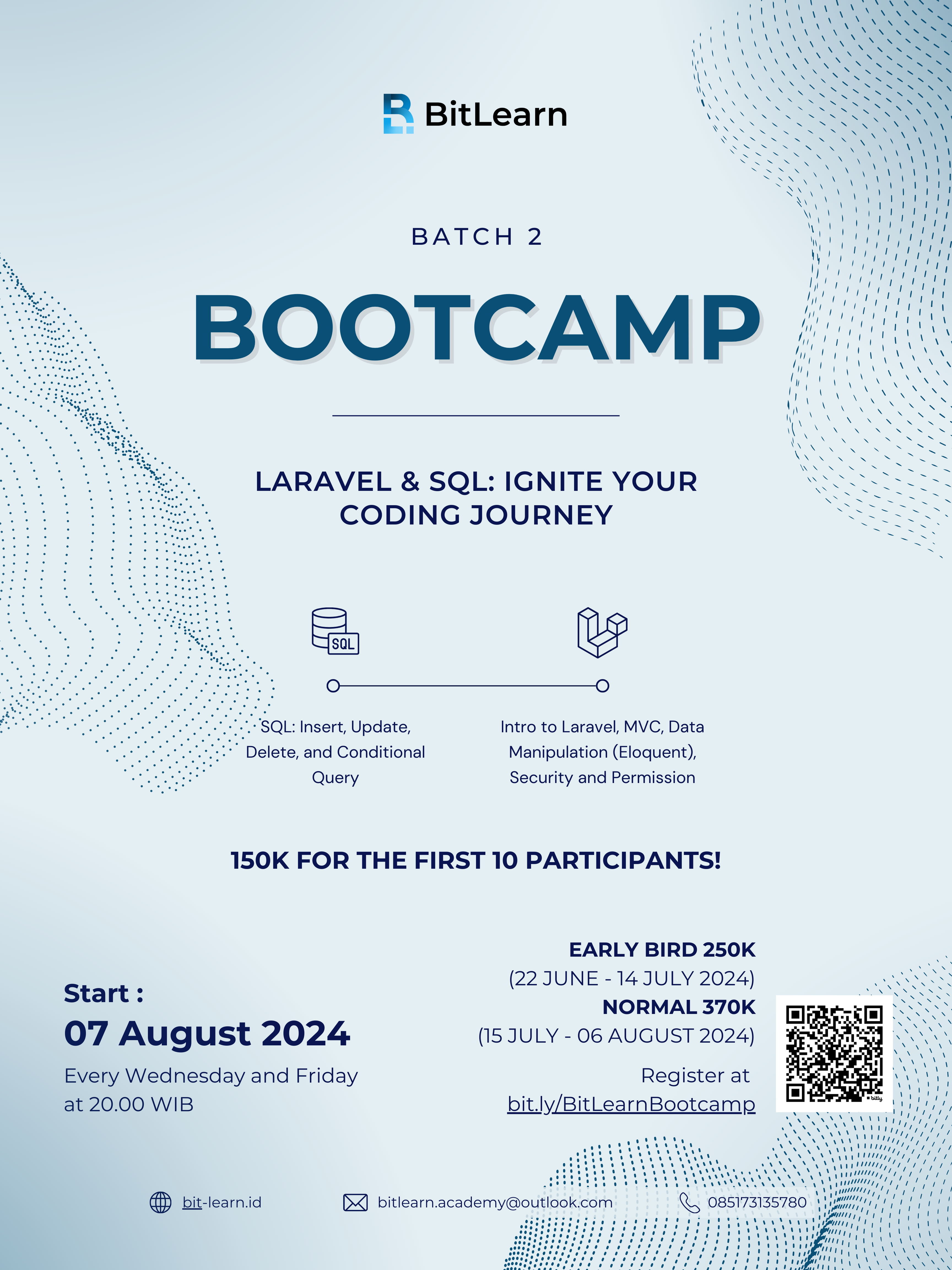 Benefit: Belajar tentang Laravel dan MySQL, membuat real Project, networking, persiapan untuk Semester 3-5, dan Sertifikat.